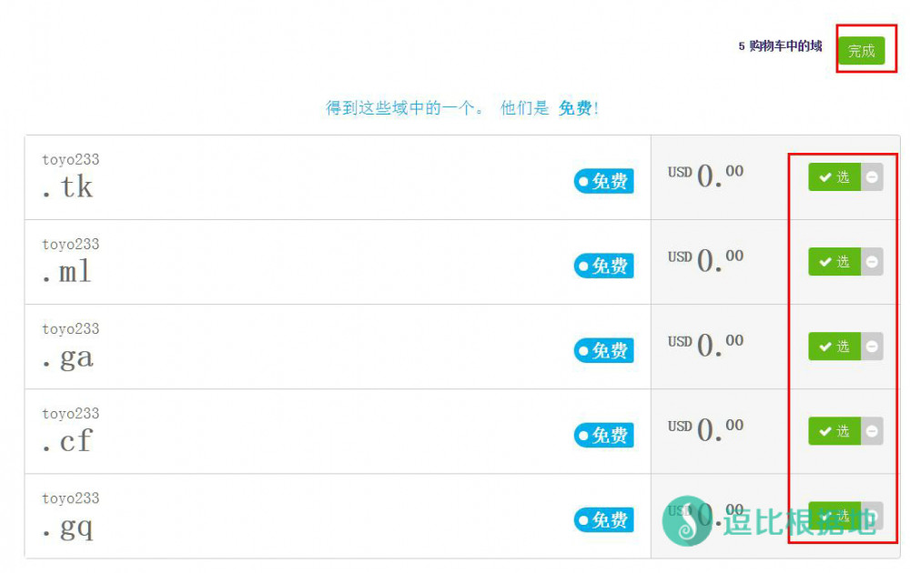 选择你想要的域名,点击现在获取(如果都被注册了,请换一个)!可以加入购物车。