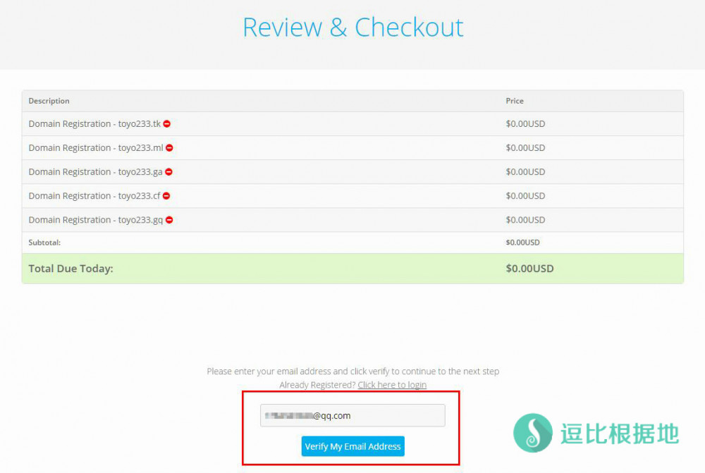 然后会让你输入邮箱来获取注册链接,点击Verify My Email Address发送邮件。