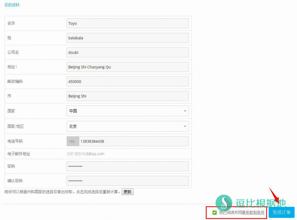 在页面填上你的资料,按照我的格式填写,记得勾选我已阅读并同意条款和条件。(这里是我翻译了一下页面,让你们看明白,实际是英文的。)