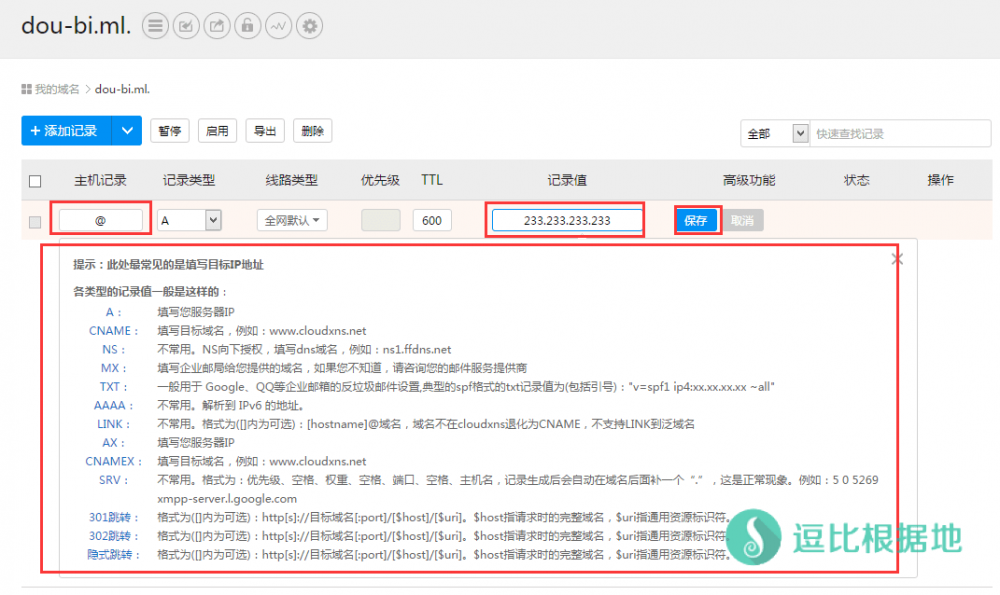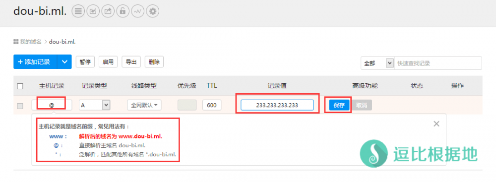 那有人会问 dou-bi.ml 是怎么用的?其实 dou-bi.ml 的主机记录是 @ 。
