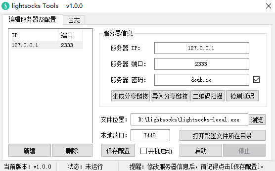 - 下载 Lightsocks Tools 客户端文件,放置到任何位置(建议和 命令行版客户端放在一起),并运行软件。