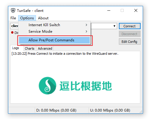- 勾选 Allow Pre/Post Commands 选项:国内外IP分流,国内IP不走VPN
