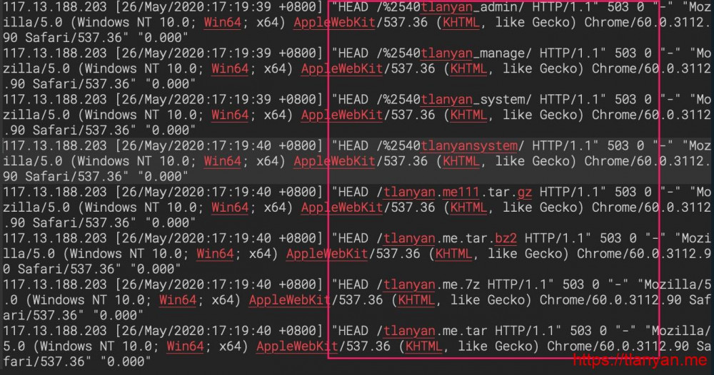 如果检查Nginx访问日志,可能经常会看到如下恶意扫描日志: