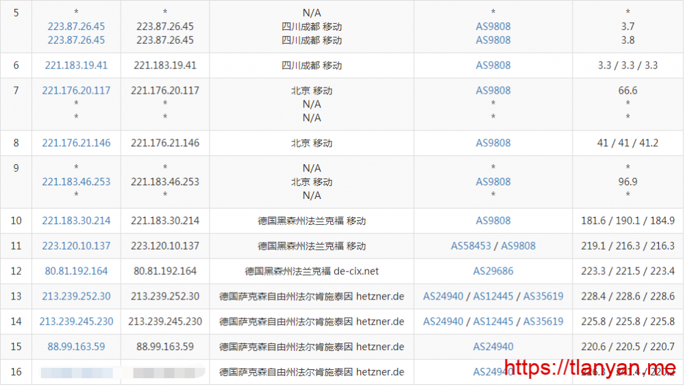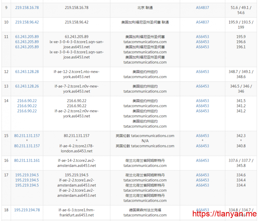 联通去程绕美国、英国、荷兰到达德国,很绕,延迟也高。