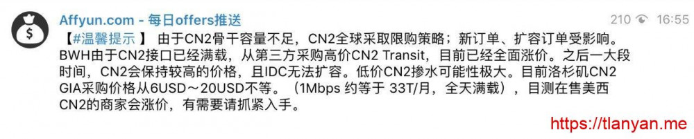 前不久本站受到DDoS攻击(详情参考 本站近期发生的几起安全事件),产生了买高防服务器的想法。今天逛论坛看到CN2路线可能要涨价的消息,觉得还是早点买好:
